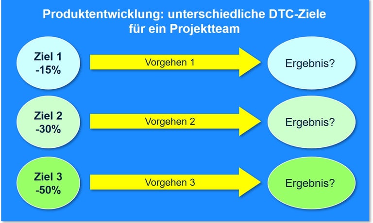Nachfolgend eine Betrachtung unterschiedlicher Kosten-Ziele für ein Projektteam für die Neuentwicklung oder Redesign eines Produktes: